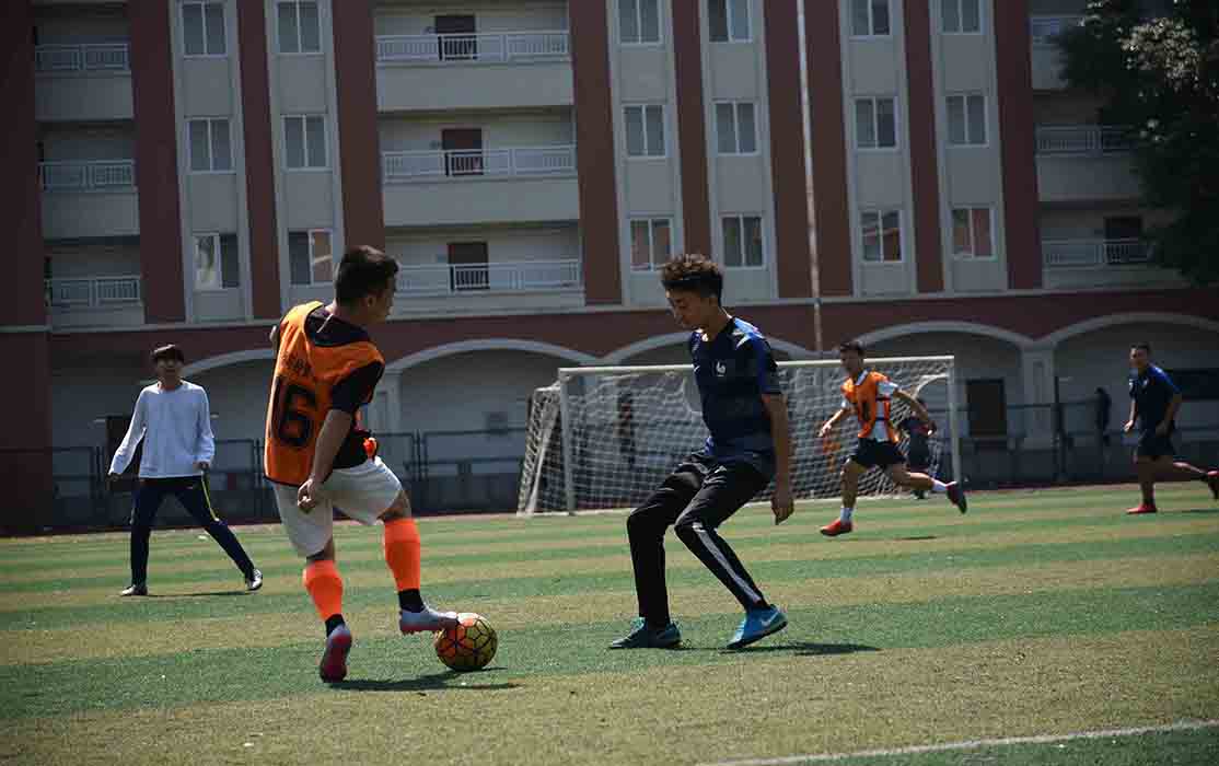2019年9月25日星期三中午12时30分,我院与戏剧影视美术设计系在校足球场展开了一次别开生面的足球友谊赛。