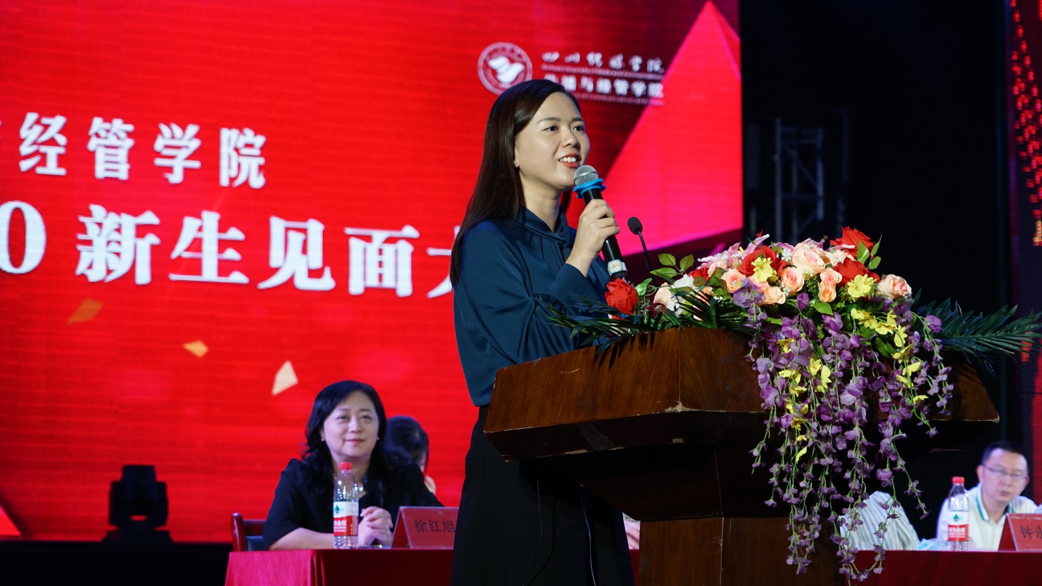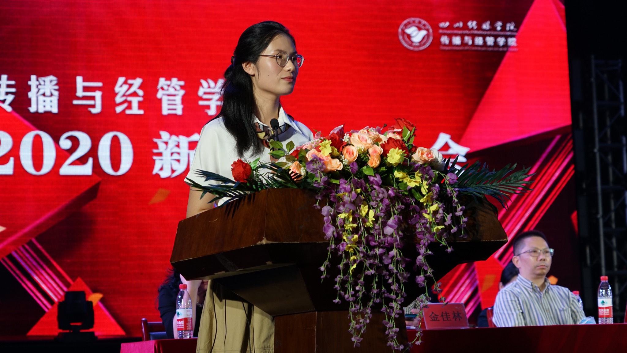首先,随着我院学生制作的迎新VCR播放,本院领导依次入席。随后,由肖院长主要围绕激发大家学习斗志致辞,此时,场内所有人员安静认真地聆听。接下来由欧阳书记针对川传的未来校园生活进行了具有前瞻性的演说,并且对川传发展史,历届优秀学生及其获奖概况做了相应阐述,并着重讲解了大学生当下应该奋斗的意义。领导发言结束后,由教师代表致欢迎辞。