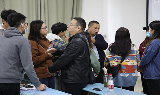 会场气氛热烈,宣讲结束后,同学们仍意犹未尽,积极与公司领导面对面交流,针对自己感兴趣和能够胜任的岗位继续咨询。杜志勇副董事长、蒲洪泉副董事长及工作人员一一回答了同学们提出的问题。同学们纷纷表示,此次宣讲获益匪浅,希望未来能够在公司实习或争取就业岗位。