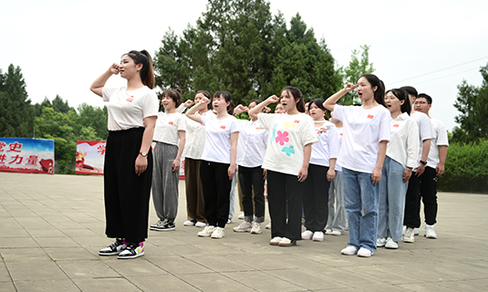 图|入党宣誓重温红歌里的故事,唱响新时代的赞歌。师生代表在红军纪念馆前齐唱《没有共产党就没有新中国》,大家情绪高昂、齐声欢唱,嘹亮雄壮的歌声响彻云霄,用自己昂扬奋进的声音,向党的百岁生日献礼。