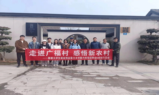 2023年3月4日,学院秘书学专业的学生在副院长赵国兴老师、秘书学专业主任孙思老师的带领下参加了“走进广福村,感悟新农村—郫都大学生就业创业助力乡村振兴感知活动”。同时,作为助力应届毕业生就业的一环,同学们还参加了郫都大学生助力乡村振兴现场招聘会。