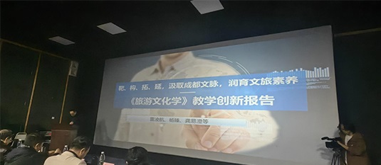 文化产业管理雷凌航老师:旅游文化学,通过线上线下教学资源的融合,课前课余线上初阶、课中教室进阶、课后赛战高阶“三阶”递进,实现课程与行业对接。