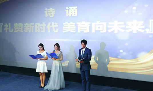 (图:诗朗诵《礼赞新时代,美育向未来》) 美与心灵同在,创意点亮未来。首先由四川传媒学院有声语言艺术学院带来的诗诵《礼赞新时代美育向未来》,悦耳的声音传递着美与创意的激情与向往,开启了颁奖典礼的闪耀时刻。