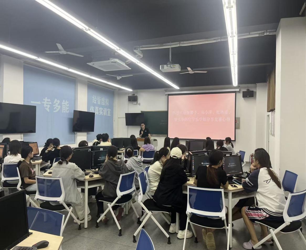 为进一步增强学生的参赛信心与实战能力,学院于当晚在A2-517教室组织了经验分享交流会,特邀上一届比赛中荣获省级奖项的郑小萍、廖玉华、杜林瑶、张馨予四位同学,围绕赛前准备、赛中策略与赛后复盘等方面进行了深入分享,并针对同学们提出的问题进行了细致解答。现场气氛热烈,交流充分,同学们纷纷表示受益匪浅,对即将到来的比赛充满信心。