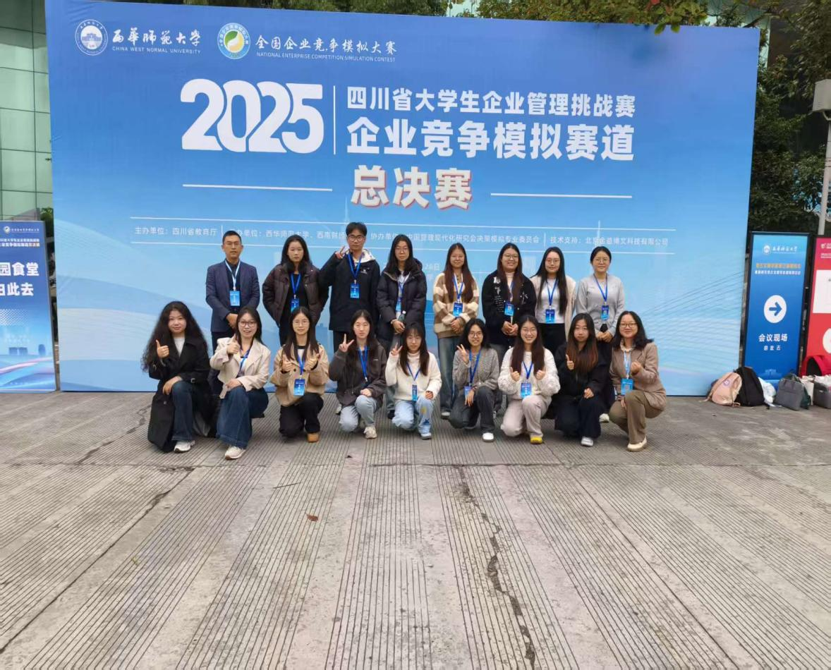 2025年10月25日至26日,四川省大学生企业管理挑战赛企业竞争模拟赛道总决赛在西华师范大学华凤校区举行。本次赛事由四川省大学生企业管理挑战赛组委会指导、西华师范大学商学院主办。来自全省各本科及高职院校的优秀队伍在此展开激烈角逐。我院派出的参赛队伍凭借出色表现,最终荣获省级三等奖。